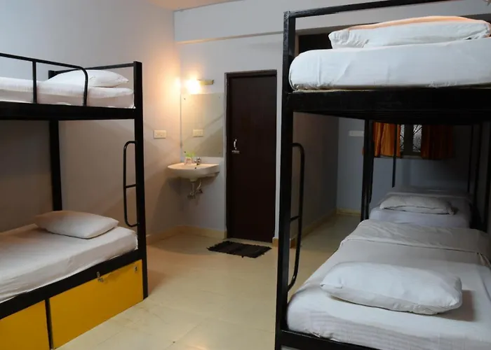 The nearest airport is Dabolim, 40 km from Backpacker Panda Goa Hostel. Titos Lane is about a 10-minute drive away. Happy Panda Beach Shack restaurant is around 15 minutes’ walk away. Major Calangute sights, such as Mario Gallery, are located nearby.